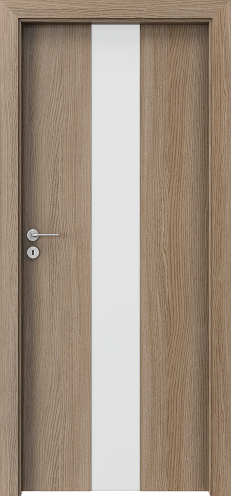 Wypełnienie stanowi „plaster miodu” lub płyta wiórowa otworowa wzmocniona wewnętrznym ramiakiem ze sklejki (opcja za dopłatą). Całość obłożona jest płytą HDF. Wzory przeszklone z szybą matową hartowaną o grubości 8 mm, która stanowi element konstrukcyjny skrzydła.