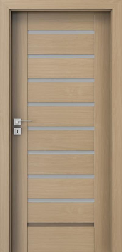 Rama wykonana jest z drewna klejonego wielowarstwowo. Skrzydła w zależności od wzoru składają się z ramiaków poziomych i płycin oraz szyb matowych wykonanych ze szkła hartowanego. Szyby matowe o grubości 4 mm mocowane są w ramiakach przy pomocy listew krępujących.