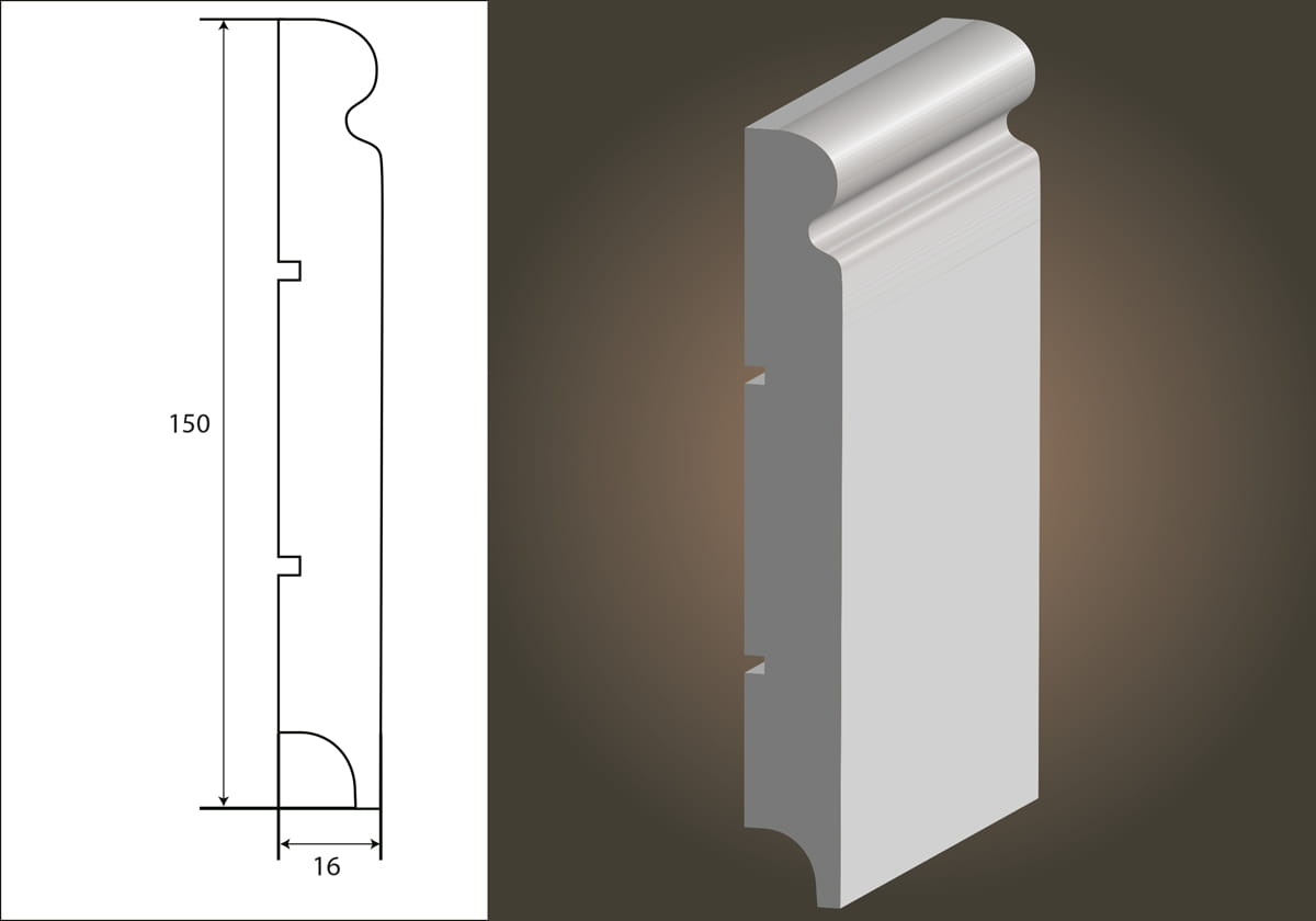 Do produkcji listew przypodłogowych stosowane są płyty MDF - płyta drewnopochodna średniej gęstości, stanowiąca podstawowy materiał produkcji mebli. Powierzchnia lakierowana lakierami poliuretanowymi, dolna krawędź izolowana przeciwwilgociowo.