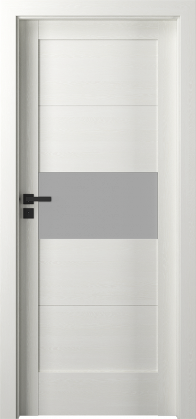 Skrzydła ramowo – płycinowe w wersji przylgowej lub bezprzylgowej. Ramiaki oraz płyciny wykonane z płyty MDF. W zależności od modelu szyba matowa hartowana o gr.4 mm. Ramiaki okleinowane obwiedniowo, górna krawędź ramiaka pionowego zadrukowana metodą Toutchwood. Modele wykonane są w wersji bez uszczelek przyszybowych (za wyjątkiem grupy produktów E i F).