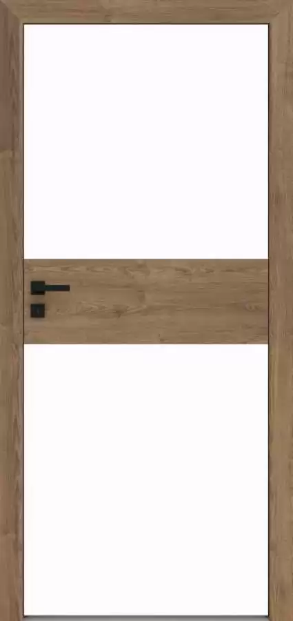 - Skrzydło wykonane w dekorze biała mat z możliwością wyboru dekoru pasa środkowego. Krawędź skrzydła w kolorze pasa