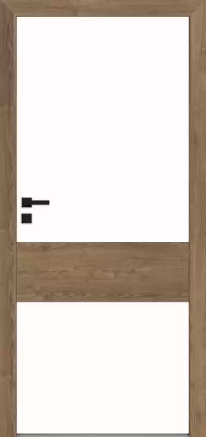 - Skrzydło wykonane w dekorze biała mat z możliwością wyboru dekoru pasa środkowego. Krawędź skrzydła w kolorze pasa
