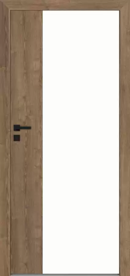 - Skrzydło wykonane w dekorze biała mat z możliwością wyboru dekoru pasa środkowego. Krawędź skrzydła w kolorze pasa