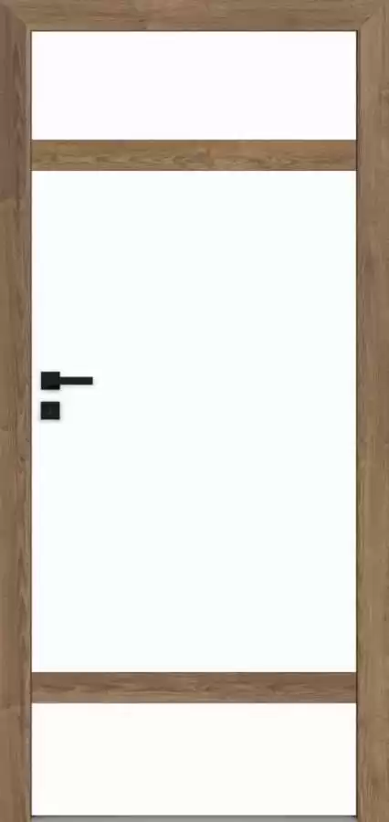 - Skrzydło wykonane w dekorze biała mat z możliwością wyboru dekoru pasa środkowego. Krawędź skrzydła w kolorze pasa