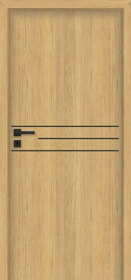 Drzwi zbudowane są z ramiaka drewnianego obłożonego dwiema gładkimi płytami HDF o powierzchni fornirów naturalnych.