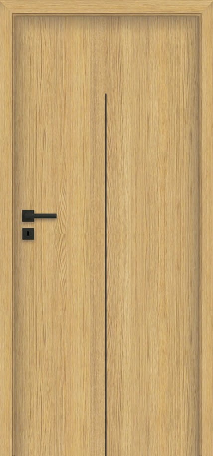 Drzwi zbudowane są z ramiaka drewnianego obłożonego dwiema gładkimi płytami HDF o powierzchni fornirów naturalnych.
